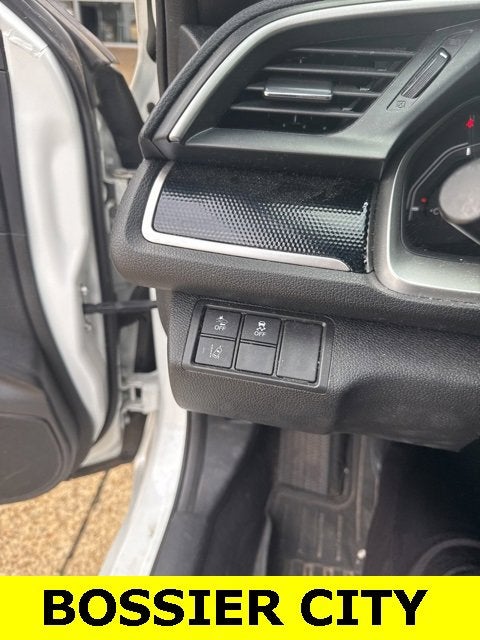 Cloth, 4-Wheel Disc Brakes, 8 Speakers, ABS brakes, Air Conditioning, Alloy wheels, AM/FM radio, Apple CarPlay/Android Auto, Auto High-beam Headlights, Automatic temperature control, Brake assist, Bumpers: body-color, Cloth Seat Trim, Delay-off headlights, Driver door bin, Driver vanity mirror, Dual front impact airbags, Dual front side impact airbags, Electronic Stability Control, Emergency communication system: HondaLink, Exterior Parking Camera Rear, Forward collision: Collision Mitigation Braking System (CMBS) + FCW mitigation, Four wheel independent suspension, Front anti-roll bar, Front Bucket Seats, Front Center Armrest, Front fog lights, Front reading lights, Fully automatic headlights, Illuminated entry, Lane departure: Lane Keeping Assist System (LKAS) active, Leather Shift Knob, Low tire pressure warning, Occupant sensing airbag, Outside temperature display, Overhead airbag, Panic alarm, Passenger door bin, Passenger vanity mirror, Power door mirrors, Power steering, Power windows, Radio data system, Radio: 180-Watt AM/FM Audio System, Rear anti-roll bar, Rear window defroster, Remote keyless entry, Security system, Speed control, Speed-sensing steering, Split folding rear seat, Spoiler, Steering wheel mounted audio controls, Tachometer, Telescoping steering wheel, Tilt steering wheel, Traction control, Trip computer, and Wheels: 18 Alloy w/Gloss Black Inserts.