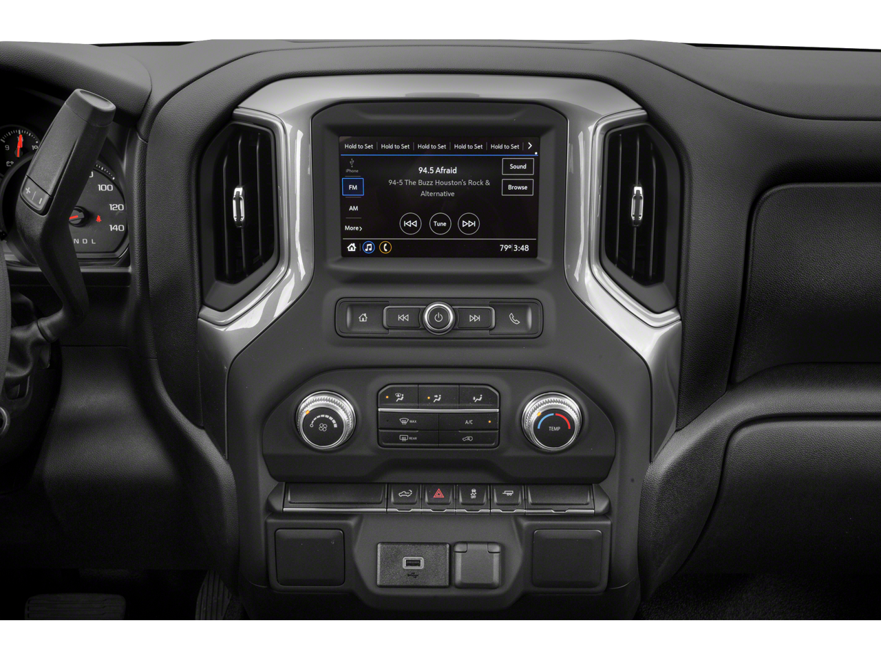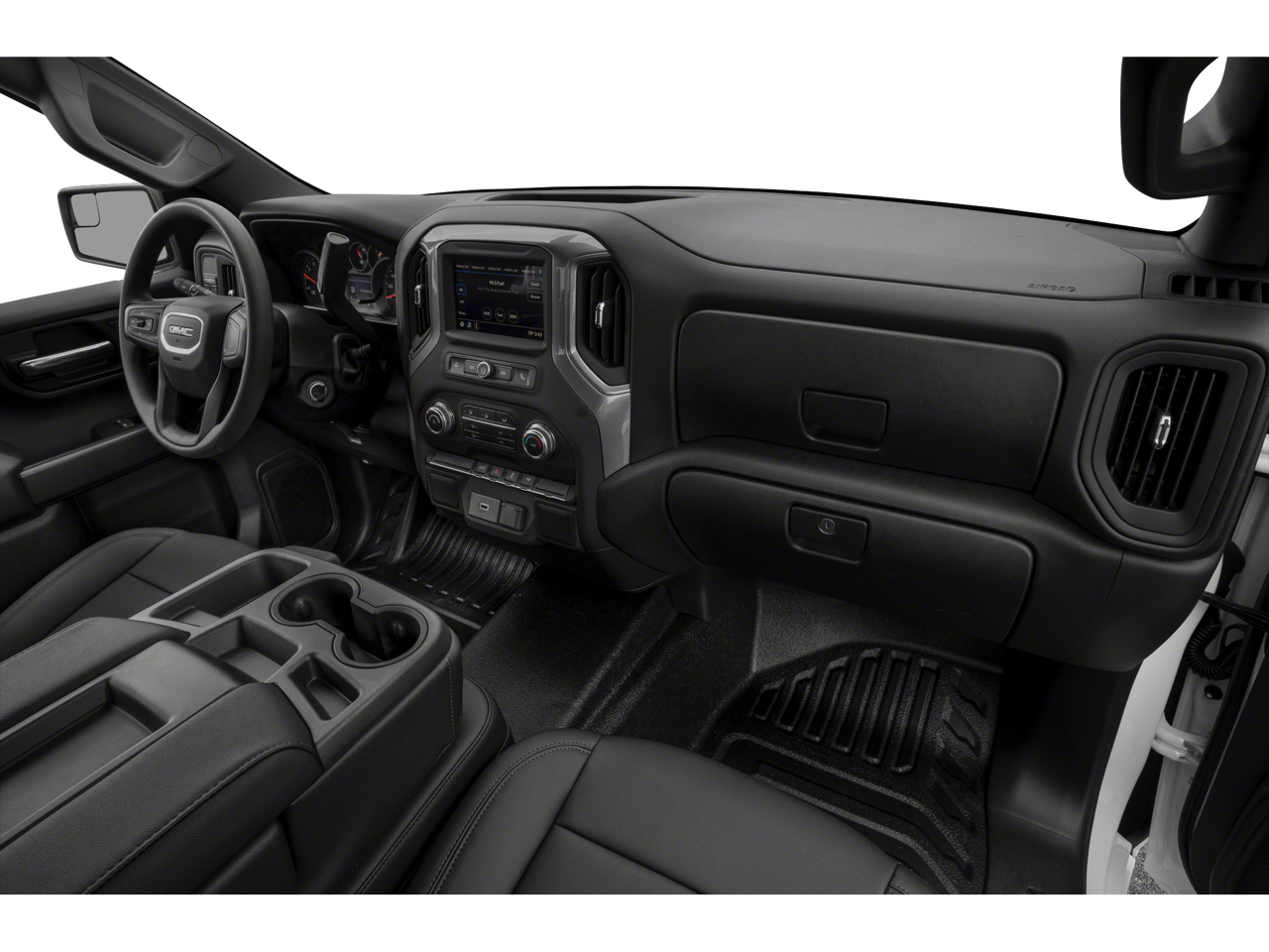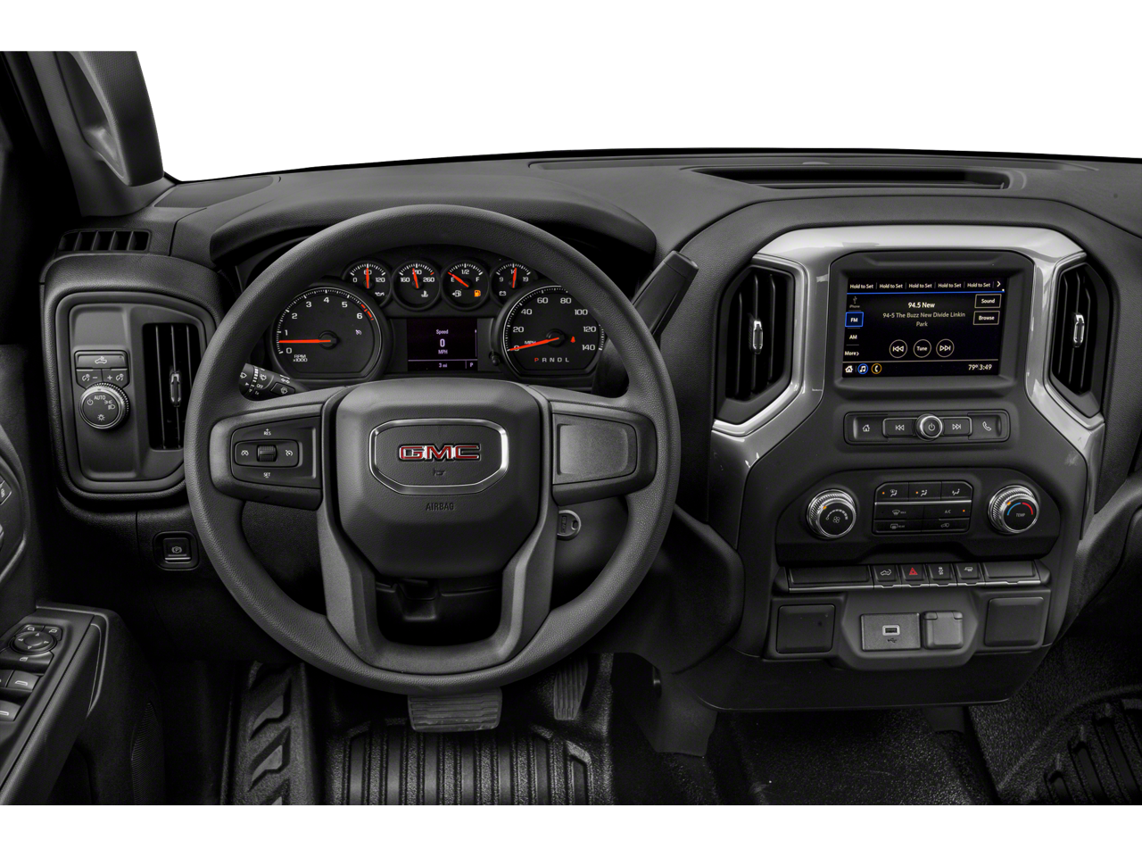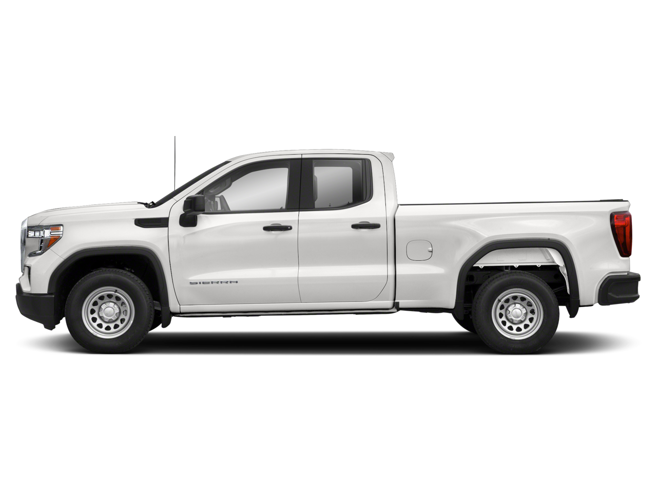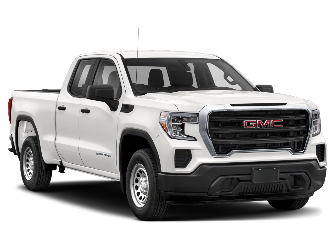 Convenience Package (Cruise Control, Deep-Tinted Glass, Electric Rear-Window Defogger, EZ Lift Power Lock & Release Tailgate, Heated Power-Adjustable Outside Mirrors, LED Cargo Area Lighting, and Remote Keyless Entry), Preferred Equipment Group 1SA (220 Amp Alternator, Black Manual Outside Mirrors, Chrome Surround Grille w/Black Mesh, Power Rear Windows w/Express Down, and Solar Absorbing Tinted Glass), Sierra Value Package, Trailering Package (Hitch Guidance), 10-Way Power Driver Seat Adjuster w/Lumbar, 120-Volt Bed Mounted Power Outlet, 120-Volt Instrument Panel Power Outlet, 3.42 Rear Axle Ratio, 4-Way Manual Driver Seat Adjuster, 4-Way Manual Passenger Seat Adjuster, 4-Wheel Disc Brakes, 6 Speakers, 6-Speaker Audio System Feature, ABS brakes, Air Conditioning, AM/FM radio, Apple CarPlay/Android Auto, Auto-Locking Rear Differential, Brake assist, Bumpers: chrome, Color-Keyed Carpeting Floor Covering, Delay-off headlights, Driver door bin, Dual front impact airbags, Dual front side impact airbags, Electronic Stability Control, Front 40/20/40 Split-Bench Seat, Front anti-roll bar, Front Center Armrest w/Storage, Front reading lights, Front Rubberized-Vinyl Floor Mats, Front wheel independent suspension, Fully automatic headlights, Heavy Duty Suspension, Low tire pressure warning, Occupant sensing airbag, Outside temperature display, Overhead airbag, Overhead console, Passenger door bin, Passenger vanity mirror, Power steering, Power windows, Premium audio system: GMC Infotainment System, Radio data system, Radio: GMC Infotainment Audio System, Rear reading lights, Rear Rubberized-Vinyl Floor Mats, Rear step bumper, Speed-sensing steering, Split folding rear seat, Tachometer, Tilt steering wheel, Traction control, Trip computer, Variably intermittent wipers, Vinyl Seat Trim, Voltmeter, Wheels: 17 x 8 Bright Silver Painted Aluminum, and Wheels: 17 x 8 Silver Painted Steel.