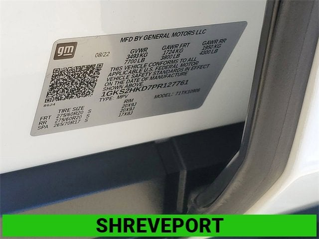 Preferred Equipment Group 4SB (2 Presets For Outside Rearview Mirrors, 3 Years of GMC Connected Services, 3 Years of OnStar Safety & Security, 3rd Row 60/40 Power-Folding Split-Bench Seat, Black Roof-Mounted Luggage Rack Side Rails, Bose 9-Speaker Stereo Audio System Feature, Bright Front & Rear Door Sill Plates, Front High-Approach Angle Fascia, Hands-Free Power Programmable Rear Liftgate, Heated & Ventilated Driver & Front Passenger Seats, Heated 2nd Row Outboard Position Seats, Heated Driver & Front Passenger Seats, Heated Steering Wheel, Heavy-Duty Air Filter, Hill Descent Control, Inside Rear-View Auto-Dimming Mirror, Outside Heated Power-Adjustable Mirrors, Power Release 2nd Row 60/40 Split-Folding Bench Seat, Power Tilt & Telescopic Steering Column, Red Horizontal-Mounted Recovery Hooks, Safety Alert Seat, Universal Home Remote, and Wireless Charging), Navigation System, 3 Years of OnStar Safety & Security (DISC), 3.23 Rear Axle Ratio, 3rd row seats: split-bench, 4-Wheel Disc Brakes, 9 Speakers, ABS brakes, Adaptive suspension, Air Conditioning, Alloy wheels, AM/FM radio: SiriusXM with 360L, AM/FM Stereo, Apple CarPlay/Android Auto, Auto High-beam Headlights, Auto-dimming door mirrors, Auto-dimming Rear-View mirror, Auto-leveling suspension, Automatic Emergency Braking, Automatic temperature control, Brake assist, Bumpers: body-color, Compass, Delay-off headlights, Driver door bin, Driver vanity mirror, Dual front impact airbags, Dual front side impact airbags, Dual-Pane Panoramic Power Sunroof, Electronic Stability Control, Emergency communication system: OnStar and GMC connected services capable, Following Distance Indicator, Forward Collision Alert, Four wheel independent suspension, Front & Rear Park Assist, Front anti-roll bar, Front Bucket Seats, Front Center Armrest, Front dual zone A/C, Front fog lights, Front Pedestrian Braking, Front reading lights, Fully automatic headlights, Garage door transmitter, Heated door mirrors, Heated front seats, Heated rear seats, Heated steering wheel, Illuminated entry, IntelliBeam Automatic High Beam On/Off, Lane Change Alert w/Side Blind Zone Alert, Lane Keep Assist w/Lane Departure Warning, Low tire pressure warning, Magnetic Ride Control Suspension, Memory seat, Not Equip w/Ventilated Seat Cushion Blower Motor, Not Equipped w/4-Way Driver & Fr Pass Pwr Lumbar, Occupant sensing airbag, Outside temperature display, Overhead airbag, Overhead console, Panic alarm, Passenger door bin, Passenger vanity mirror, Perforated Leather Seating Surfaces, Power door mirrors, Power driver seat, Power Liftgate, Power passenger seat, Power Release 2nd Row Bucket Seats, Power steering, Power windows, Rain sensing wipers, Rear air conditioning, Rear anti-roll bar, Rear Cross Traffic Alert, Rear reading lights, Rear seat center armrest, Rear window defroster, Rear window wiper, Remote keyless entry, Roof rack: rails only, Security system, SiriusXM w/