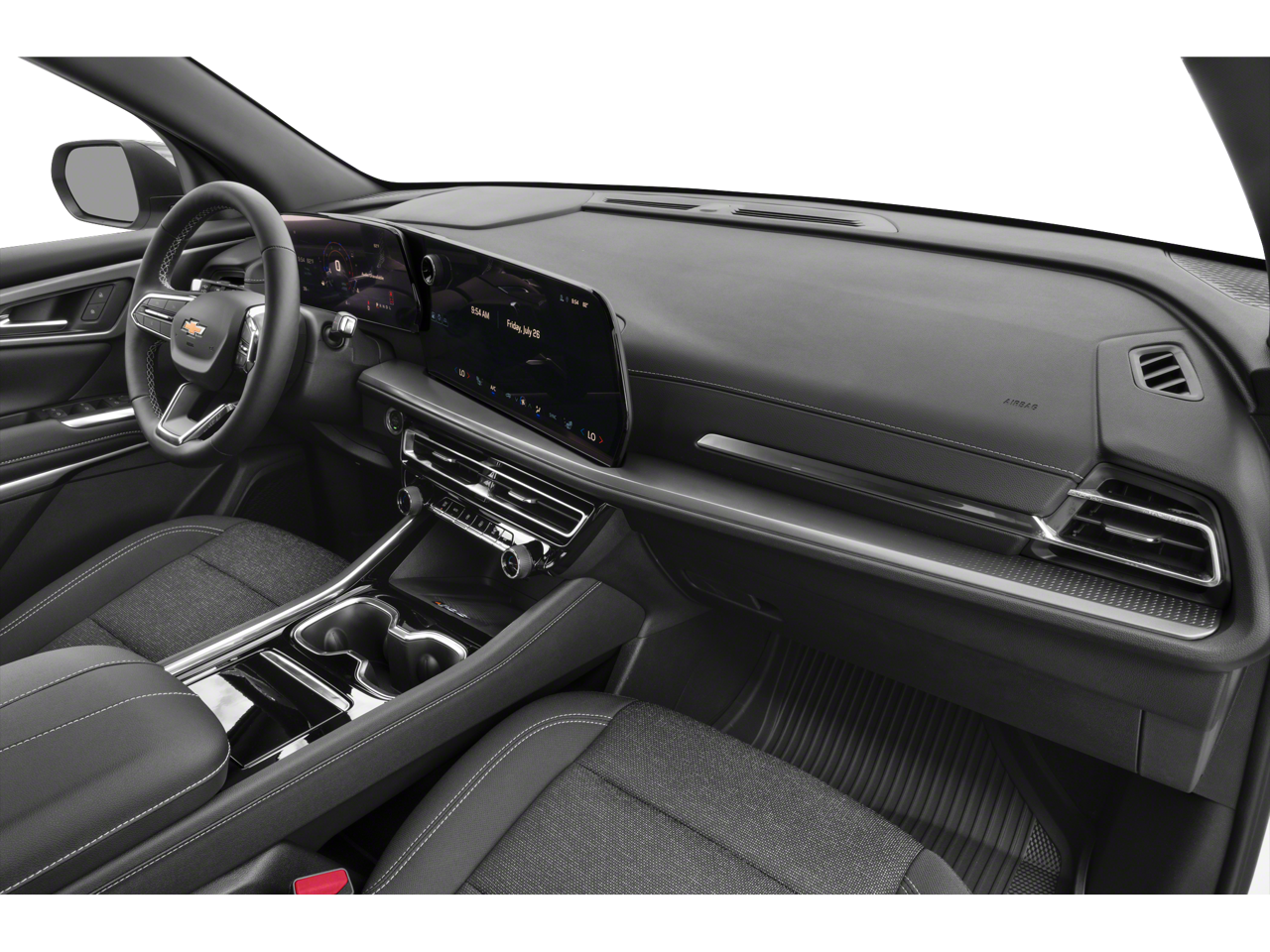 3rd row seats: split-bench, 4-Way Manual Front Passenger Seat Adjuster, 4-Wheel Disc Brakes, 6 Speakers, 6-Speaker Audio System Feature, 8-Way Power Driver Seat Adjuster, ABS brakes, Air Conditioning, Alloy wheels, AM/FM radio: SiriusXM with 360L, Apple CarPlay/Android Auto, Auto High-beam Headlights, Automatic temperature control, Brake assist, Bumpers: body-color, Child-Seat-Sensing Airbag, Compass, Delay-off headlights, Driver door bin, Driver vanity mirror, Dual front impact airbags, Dual front side impact airbags, Electronic Stability Control, Emergency communication system: OnStar, Four wheel independent suspension, Front anti-roll bar, Front Bucket Seats, Front Center Armrest, Front dual zone A/C, Front reading lights, Fully automatic headlights, Heated door mirrors, Heated front seats, Heated steering wheel, Illuminated entry, Low tire pressure warning, Navigation System, Occupant sensing airbag, Outside temperature display, Overhead airbag, Overhead console, Panic alarm, Passenger door bin, Passenger vanity mirror, Power door mirrors, Power driver seat, Power Liftgate, Power steering, Power windows, Premium Cloth Seat Trim, Radio data system, Radio: : Audio System w/17.7 Diagonal Display, Rear air conditioning, Rear anti-roll bar, Rear reading lights, Rear window defroster, Rear window wiper, Remote keyless entry, Security system, SiriusXM with 360L Trial Subscription, Speed control, Speed-sensing steering, Spoiler, Steering wheel mounted audio controls, Tachometer, Telescoping steering wheel, Tilt steering wheel, Traction control, Trip computer, Turn signal indicator mirrors, Variably intermittent wipers, Voltmeter, and Wheels: 18 Grazen Metallic Machined-Face Aluminum.